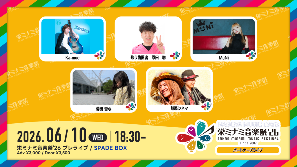 HOME > 未分類 > 未分類 6/10(水)栄ミナミパートナーズライブ@スペードボックス 投稿日:2026年4月8日 出演時間未定 Twitter Share Google+ Pocket Hatena LINE -未分類
